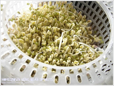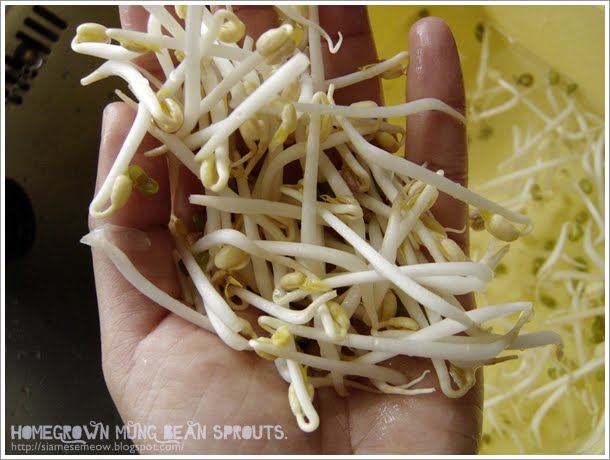 อยู่ปารีสมาตั้งนาน เพิ่งมาคิดปลูกถั่วงอกเอาไว้กินเองก็ตอนนี้ แถมยังลุ่มหลง เอามากๆขนาดว่าเช้าต้องเข้าไปเยี่ยมถั่ว เย็นต้องเข้าไปเยี่ยมถั่ว กลางคืนก่อนนอนยังต้องไปบอกราตรีสวัสดิ์มัน (เย๊ยยย) จนสามีน้อยใจแอบกัดแกมหยอกว่า เดี๋ยวนี้เป็นชู้กับถั่วงอกซะแล้วหรือ เอาใจมันเหลือเกิน แถมวันๆยังนั่งค้นข้อมูลในเน็ตอย่างเอาเป็นเอาตาย (ว่ะ ฮ่า ฮ่า ทำมาว่าเค้า เดี๋ยวได้กินถั่วงอกงามๆ ของเราแล้วติดใจ)เพราะว่าเอาถังเพาะถั่วงอกไปวางไว้ในตู้เก็บของในห้องน้ำเนื่องจากมันเป็นที่ๆเราคิดว่ามืดและอุ่นที่สุดในบ้านแล้ว ก็เลยต้องตามไปรดน้ำและแอบบแง้มฝาดูทุกวันว่ามันจะโตไหม จะกินได้หรือยัง เพราะตามที่เขาสอนมา เขาว่า4 วันก็เก็บเอาไปใส่ก๋วยเตี๋ยวกินได้แล้วแต่รอบแรกที่เราปลูก (ในครัว) 4 วันหางยังสั้นจุ๊ดจู๋อยู่เลย ต้องรอวันที่6 (ด้วยความระทึก เพราะเชิญเพื่อนมากินข้าวที่บ้าน จะผัดไทยให้หม่ำ กะอวดถั่วงอกปลูกเองกันวันนั้น) ถึงจะได้เก็บมากิน แต่ถั่วงอกเรา หัวโต ตัวลีบ แถมสั้นอีก ไม่เหมือนคนปลูกเอาซะเลย (ทั้งอวบ ทั้งบวม)